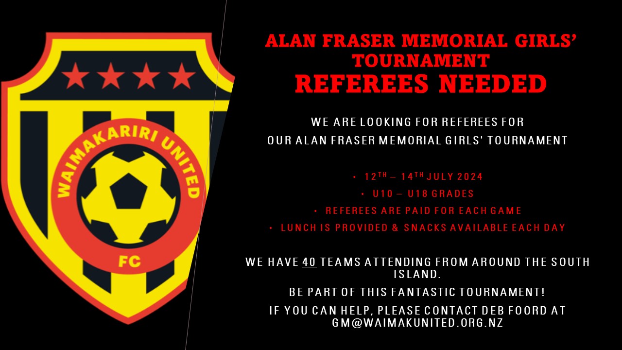 If you are able to come along for one game or three days of games, please contact Deb Foord at gm@waimakunited.org.nz for more information.