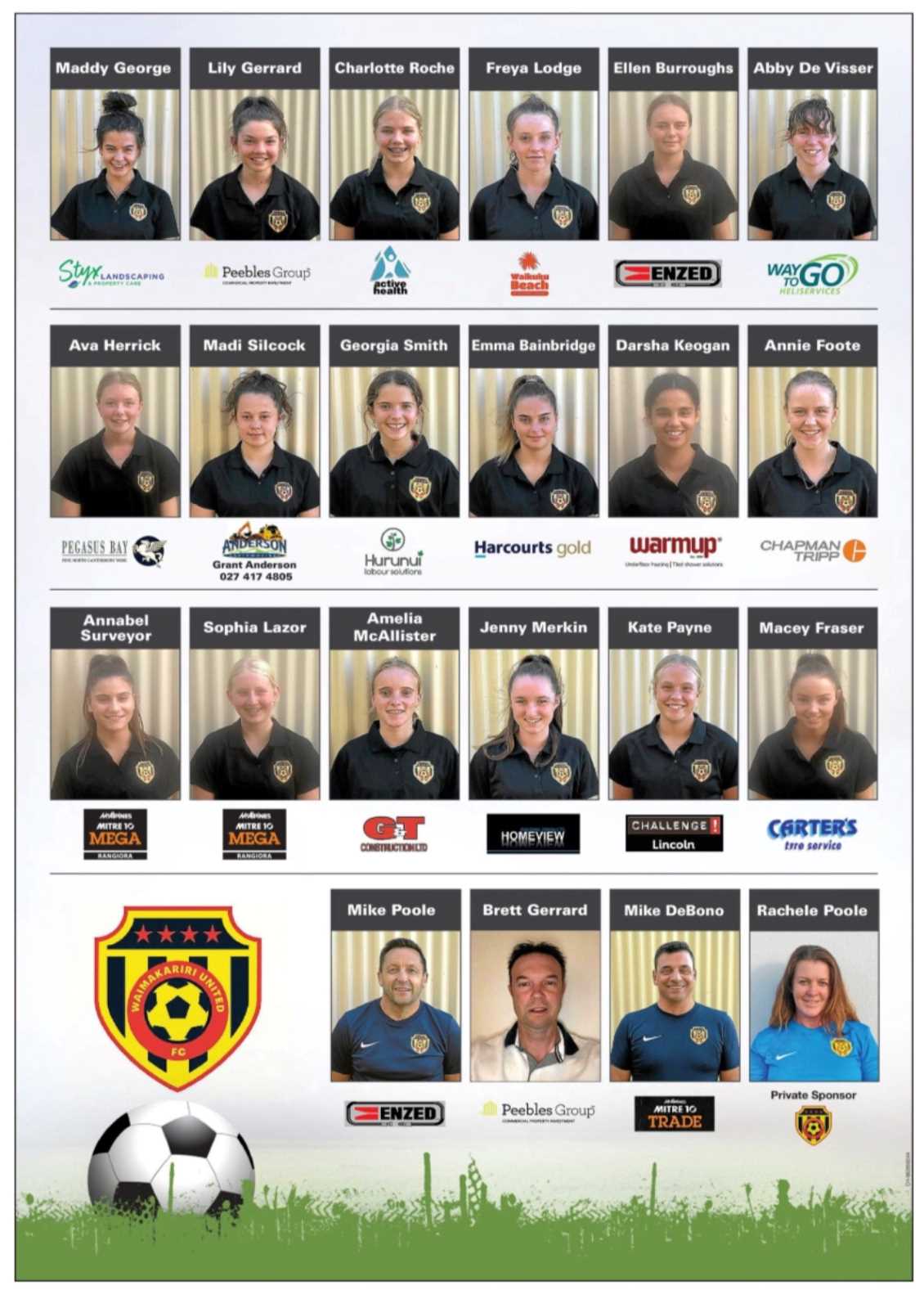 On behalf of the Waimak United U17s team we wish to thank all the businesses who have sponsored the players for their upcoming tournament.The U17 girls head to Auckland on the 19th of March to compete in the U17 National Youth Tournament hosted by Western Springs (20-22 March).We wish the girls all the very best.